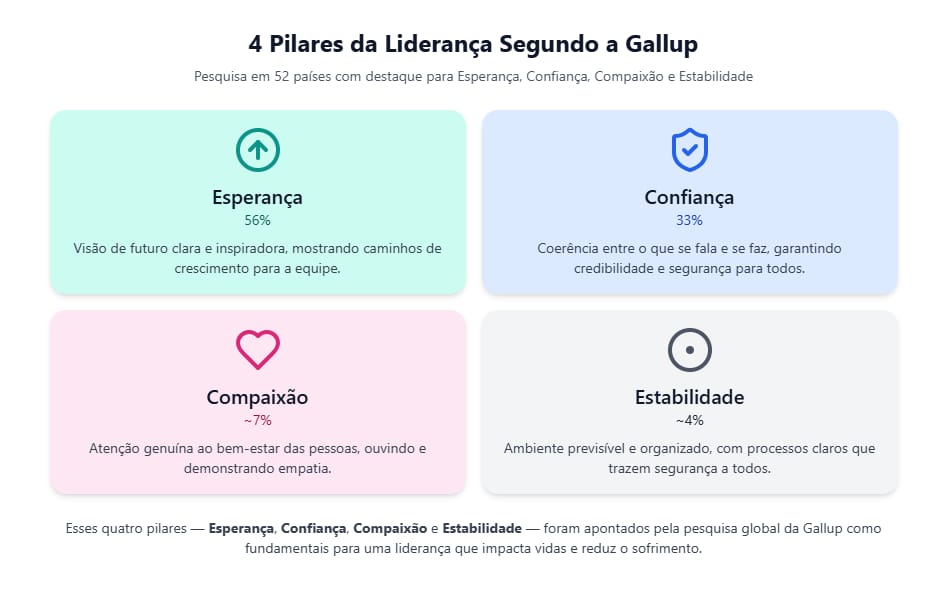 Você já ouviu falar de uma pesquisa da Gallup realizada em 52 países? Ela mostrou que a maior expectativa das pessoas em relação aos seus líderes é a esperança.